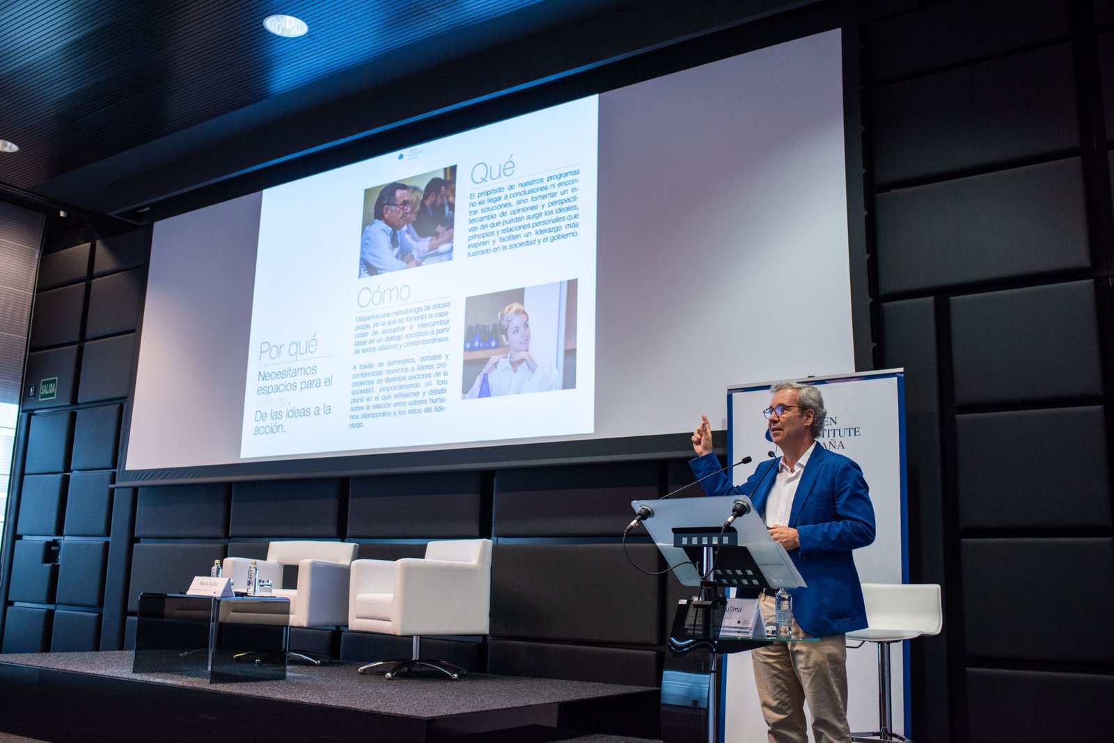 On the 9th of July, we celebrated the Annual Aspen Alumni Meeting with alumni and friends who support the work of Aspen Institute España. On this occasion, we had the pleasure of hosting Wiliam Powers, writer, journalist, technologist, and researcher at the MIT MediaLab, who spoke with María Sicilia, Director of International Strategy at Enagás, on the role of digital technology and its power to change human relationships. During the conference on “Being Human Again: The Power of Time Offline“, William Powers and María Sicilia also exchanged views on digital disconnection, common human values, and the economization of ¨attention¨, among other topics.